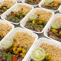 Bœuf chimichurri avec quinoa, poivrons, choux de Bruxelles, haricots noirs et guacamole